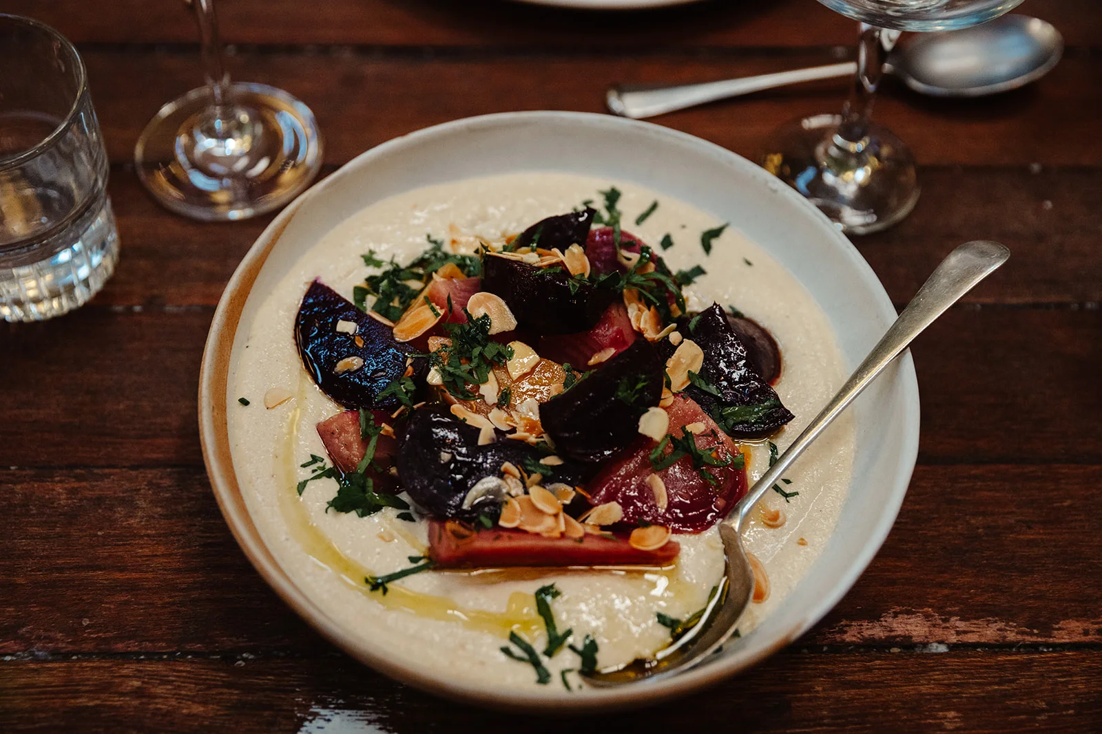 Smoked beetroot with ajo blanco (v, contains nuts)